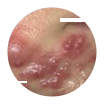 Гнойнички возвышаются над кожей, содержат беловато-желтую гнойную