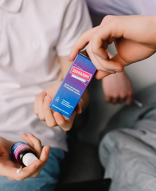 Зеркалин® выпускается в форме 1% спиртового раствора клиндамицина. Спиртовая основа обеспечивает более глубокое проникновение действующего вещества в кожу, а также обладает дополнительным антисептическим и подсушивающим эффектом. Форма раствора позволяет использовать Зеркалин® не только на лице и туловище, но также и на волосистой части головы, так как Зеркалин® незаметен на волосах после высыхания.