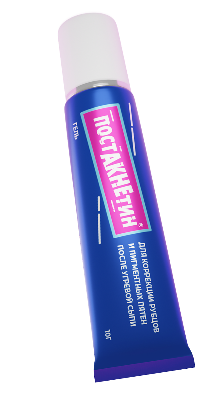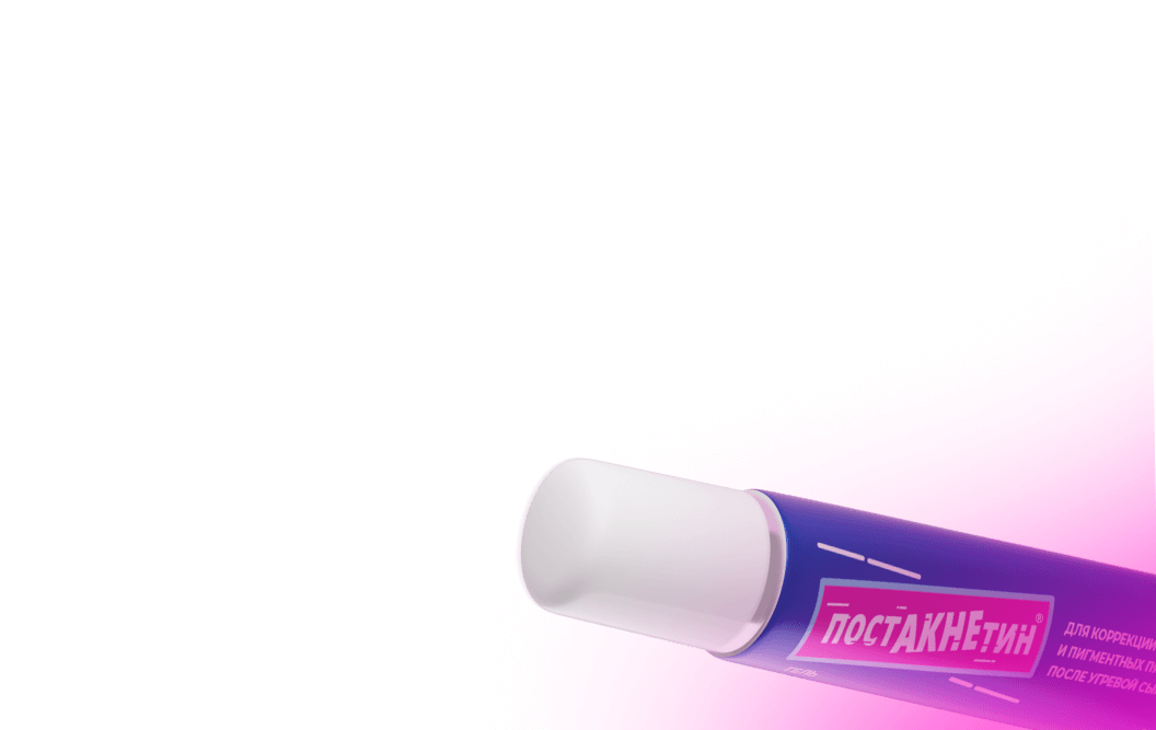 Может применяться одновременно с лечением угревой сыпи после заживления элементов. Включение Постакнетина® в схему ухода за кожей при акне помогает в борьбе с пятнами гиперпигментации и рубцами на месте элементов угревой сыпи.