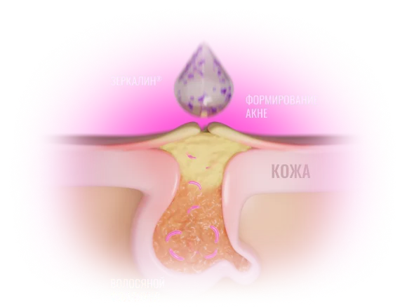 Зеркалин® останавливает размножение бактерий, приводящих к воспалению при акне, и оказывает противовоспалительное действие 3